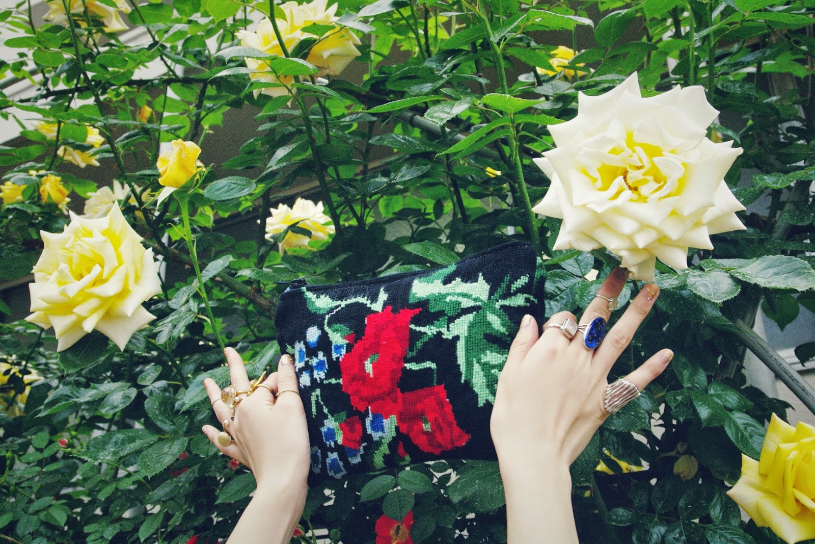 こちらは、バラやお花が刺繍された華やかなバッグ。