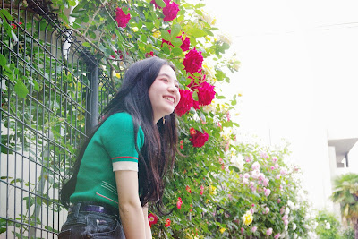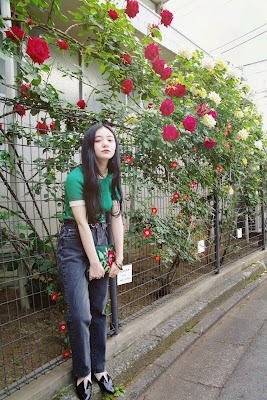 鮮やかなグリーンのニットはコンパクトなサイズ感と