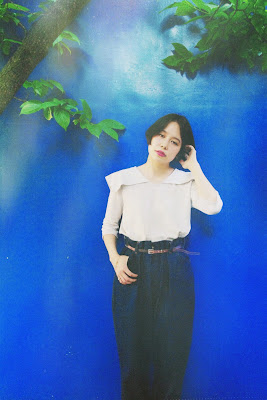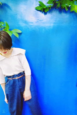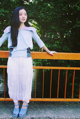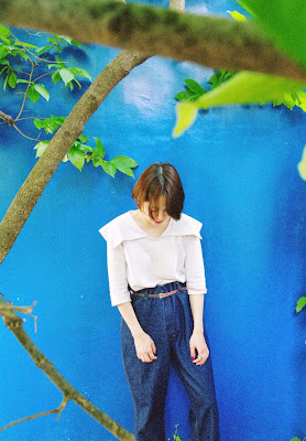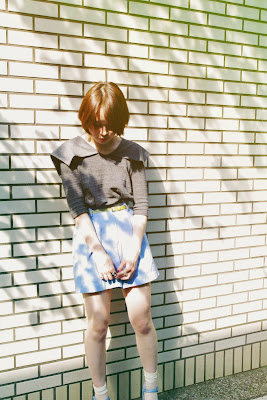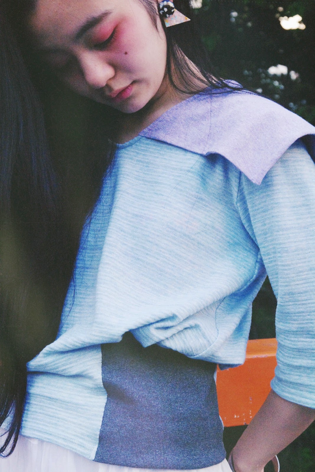 使用したブラウスは、セーラーカラー風の大きな襟がポイント。