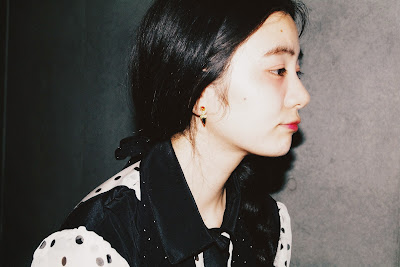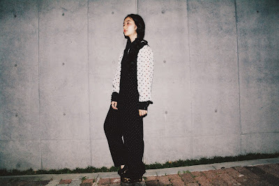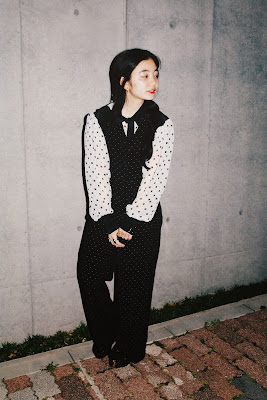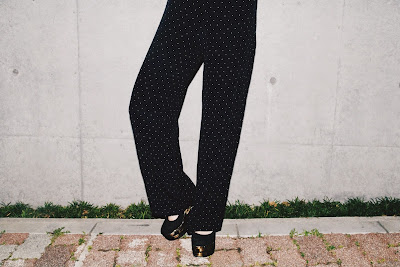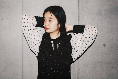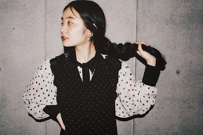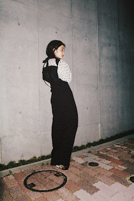 ドットのブラウスでもかわいくなりすぎませんよ〜!