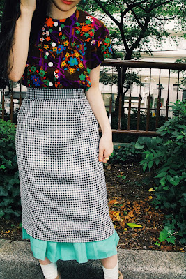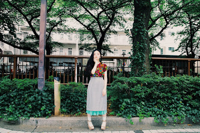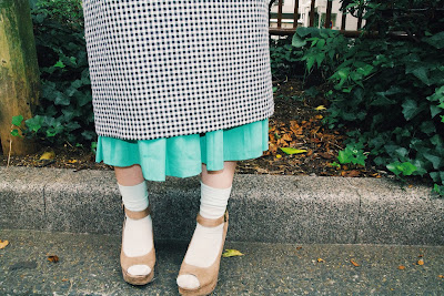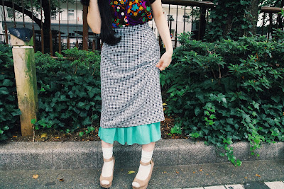 全く違うシルエットのスカートを重ねて、