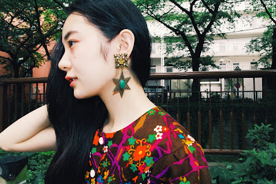 耳元にはオリエンタルな雰囲気のMADELEINE EARRINGSを*