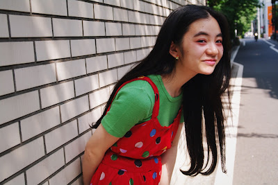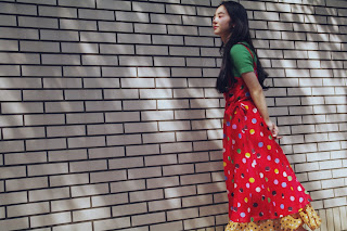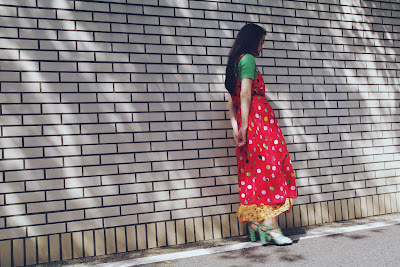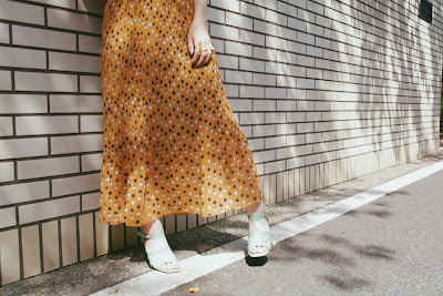 本日スタッフは、更にドットのスカートを重ねて。