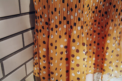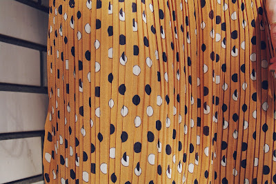 落ち着いたマスタードカラーとブラック&ホワイトのドットなので