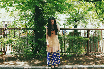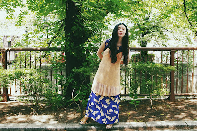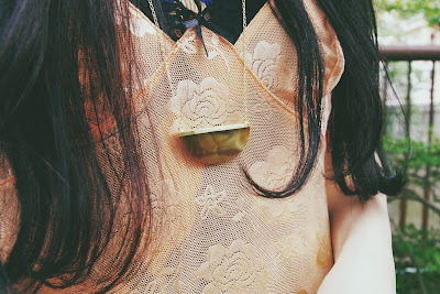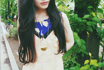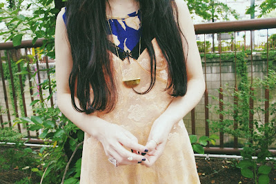 ドレスの上から、ベビーピンクのVINTAGE SLIP DRESSを重ねて
