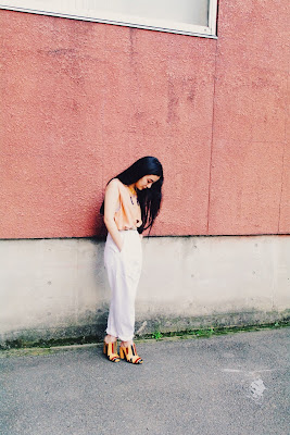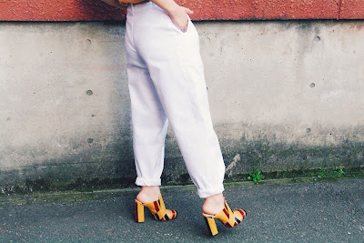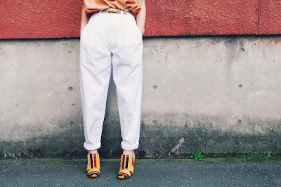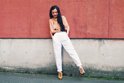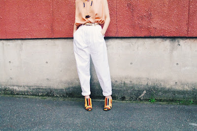 ホワイトカラーのパンツを合わせて色合いはシンプルに。