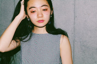 耳元には、表情の異なる2種類のアクリルパーツを組み合わせたSusie earrings*