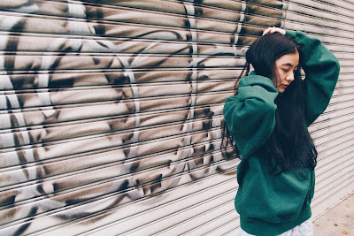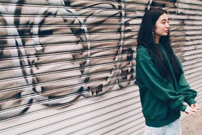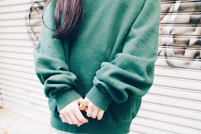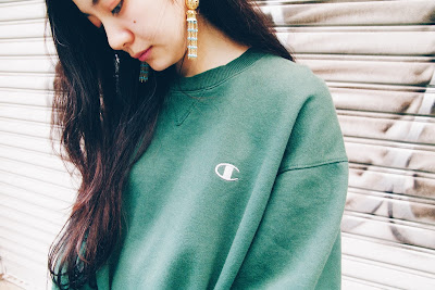 モスグリーンの絶妙な色合いのスウェットは