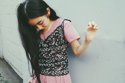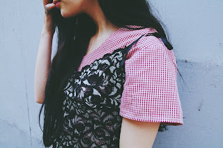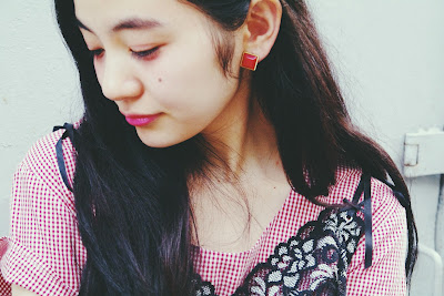 レッド×ホワイトの細かいギンガムチェック柄が可愛らしい印象の
