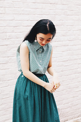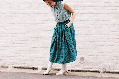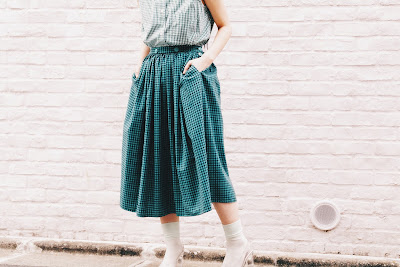 + GREEN GINGHAM CHECK SKIRT+