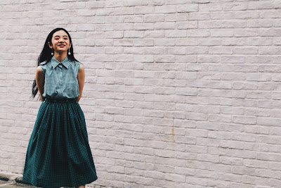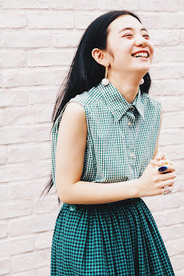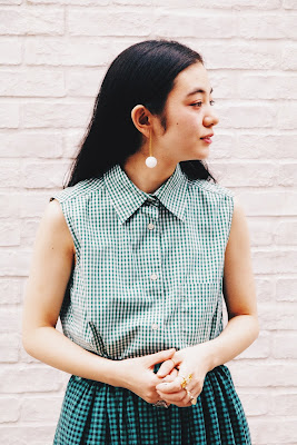 ホワイト×グリーンが爽やかな印象のギンガムチェックブラウスは、