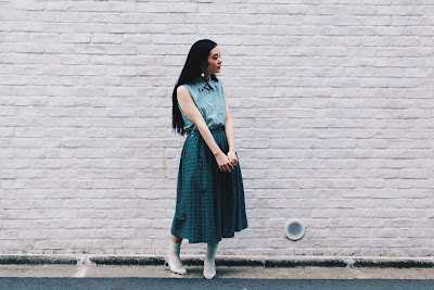こちらのブラック×グリーンのギンガムチェックスカートは、