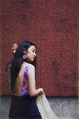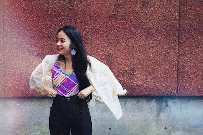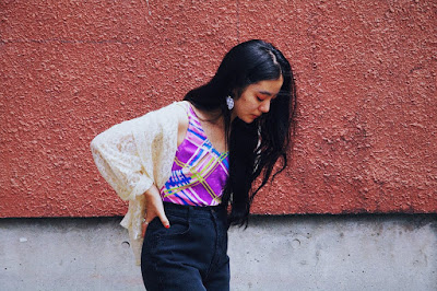 特徴的なテキスタイルのトップスには、