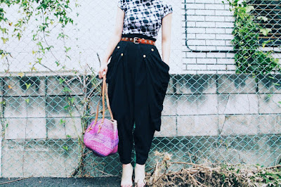 ブラックカラーのボトムを合わせて少しシックに大人らしく*