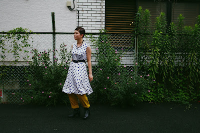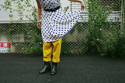 スカートと重ねてドット柄をチラッと覗かせるのも良し*