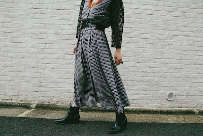 ブラック×ホワイトのチェックが目を惹くこちらのワンピースは、