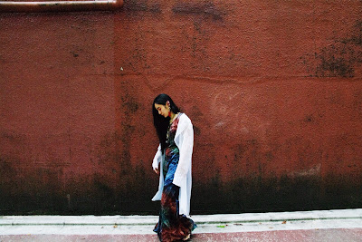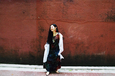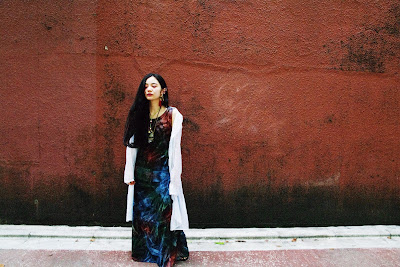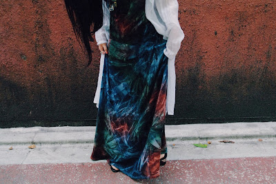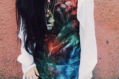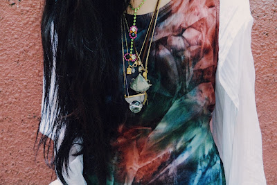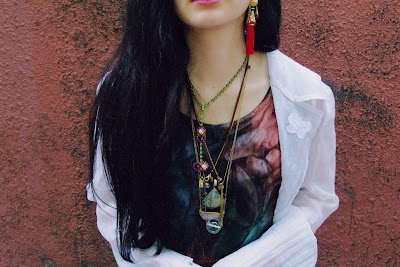 首元には、じゃらじゃらとたっぷりのネックレスを重ねて。