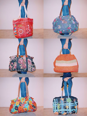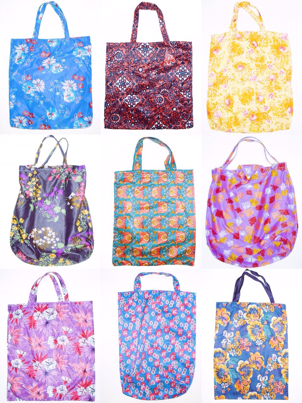 様々なカラー、模様の60−70sナイロンバッグとショルダーバッグは