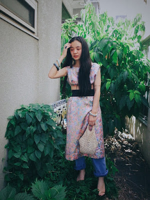 トップスはおへそが見えるショート丈でどんなボトムとも相性が良く、