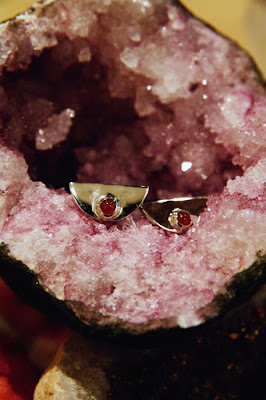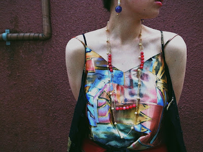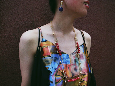 繊細な装飾のチェーンと直線的な天然石ビーズのコントラストが、