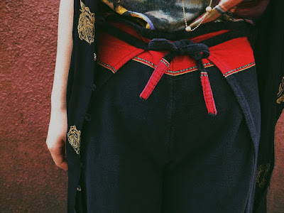ウエスト部分はフロントとバックに付いている紐で縛るので、