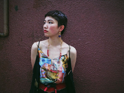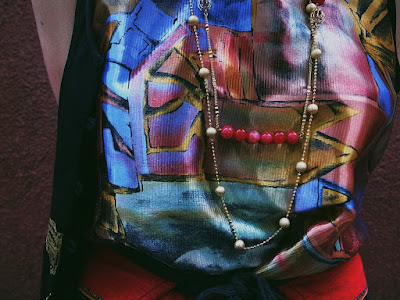まるで1枚の絵のようなテキスタイルのトップスは、