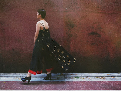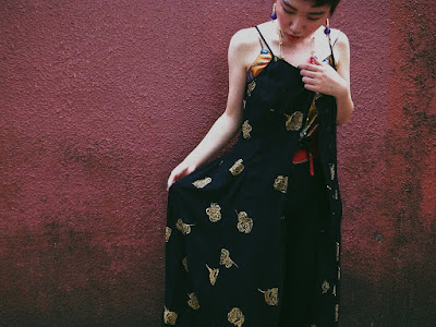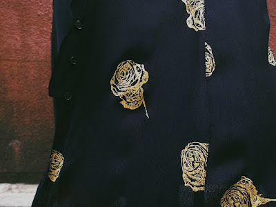 ブラック地にゴールドのバラが上品なこちらのワンピースは、