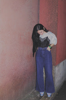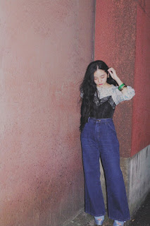 BLACK LACE BUSTIERは大胆にトップスの上から合わせる事で、