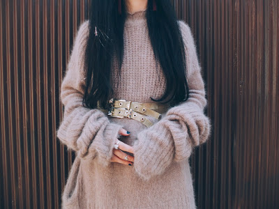 アンゴラを70%含む糸で編み立てられたチュニック。