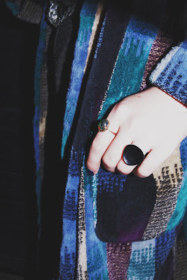 大ぶりなシルバープレートが目を惹くリングを重ね付け。