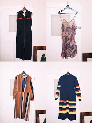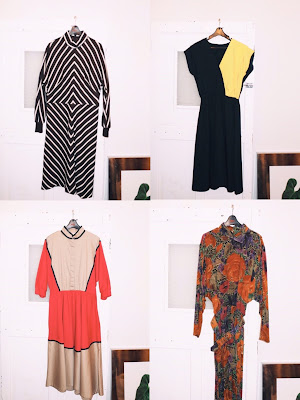 レトロな配色のロングワンピースや、
