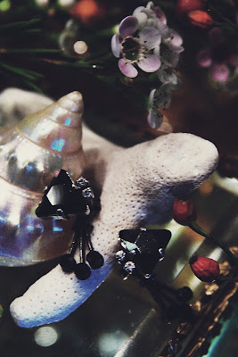 +Black triangle pierced earrings+