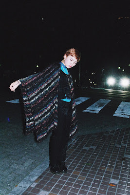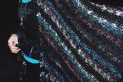 カラフルな糸を使って編み上げられたボーダーのショールは、