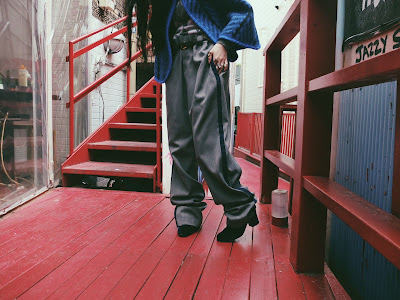 大きなウエストをベルトでぎゅっと絞って履けば、