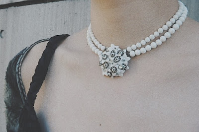 ホワイトの小ぶりな花のビーズがぎゅっと集まり、