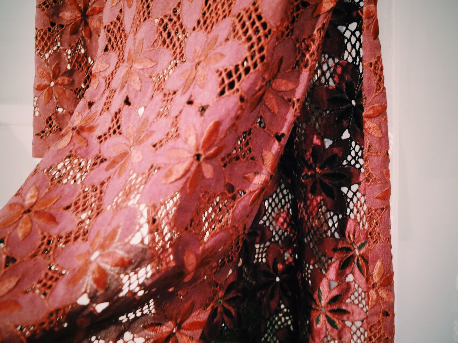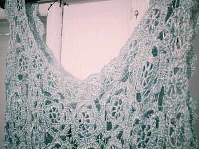丁寧にきっちりと編まれたアイボリーのドレス。