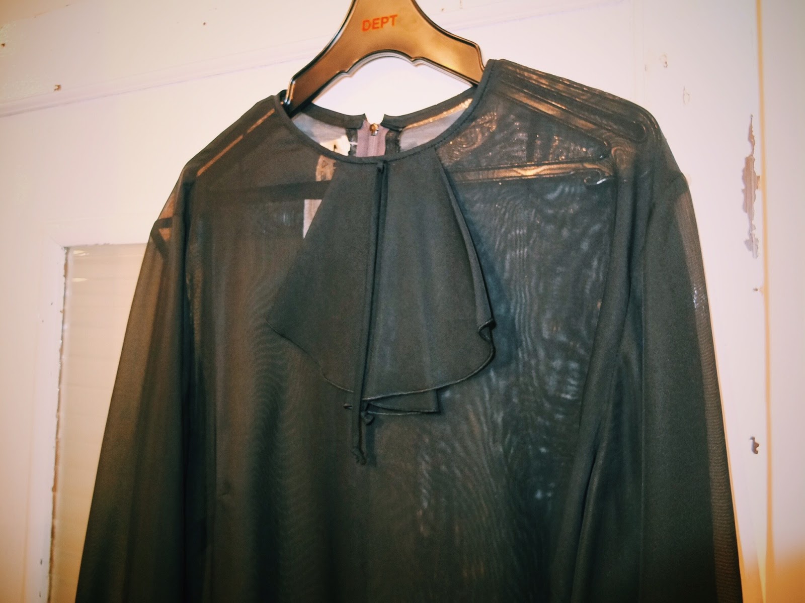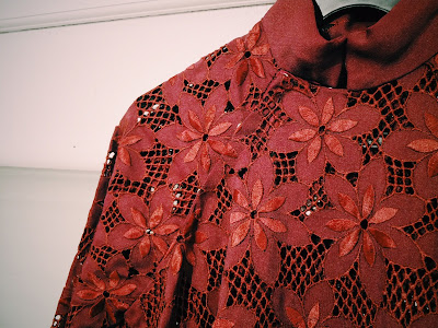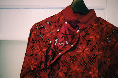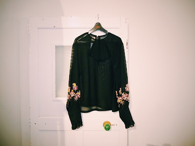 襟元のフリルと袖のお花の刺繍がなんともロマンティック。